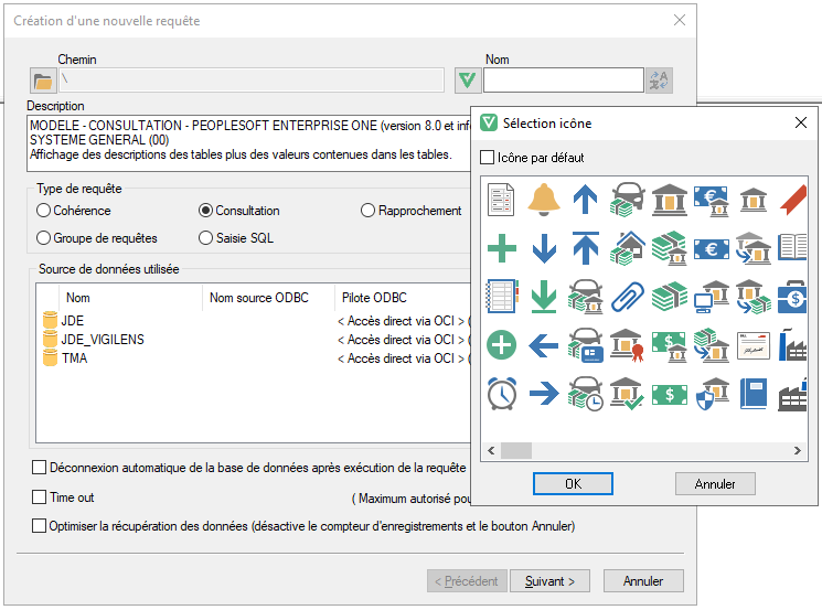 Choix de la source de donnée et (éventuellement) de l’environnement JDE/Oneworld (pour les sources de données concernées).